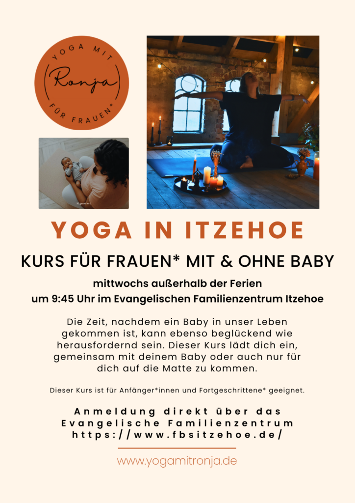 Yoga für Frauen mit & ohne Baby ab 26.08.2026 Anmeldungen über unsere Gesamtkursübersicht oder per E-Mail unter info@fbs-itzehoe.de